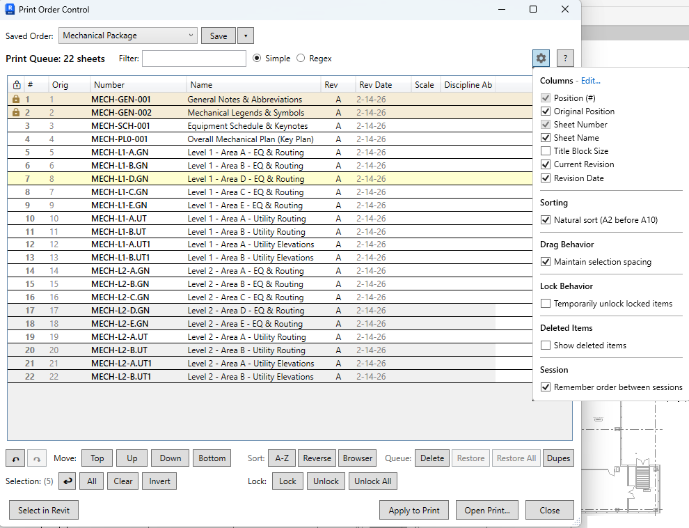 | Apply to Print | Save the current order to Revit's print selection (doesn't open Print dialog) |
